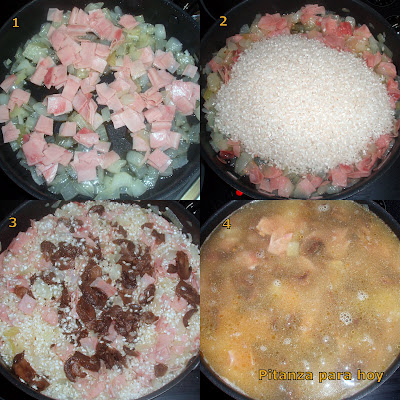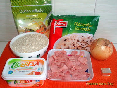 | Ingredientes del Arroz con jamón y champiñones |