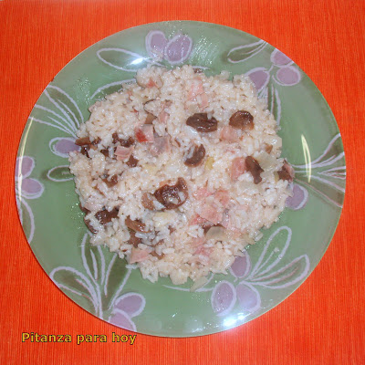Esta receta de arroz es otra de las habituales en mi casa. Se trata de arroz con jamón y champiñones. La receta la empecé a hacer hace ya bastante tiempo. La saqué de un libro de recetas que regalaban hace muchos años (en los 80) con una marca de margarina y que mi madre tenía en su casa.