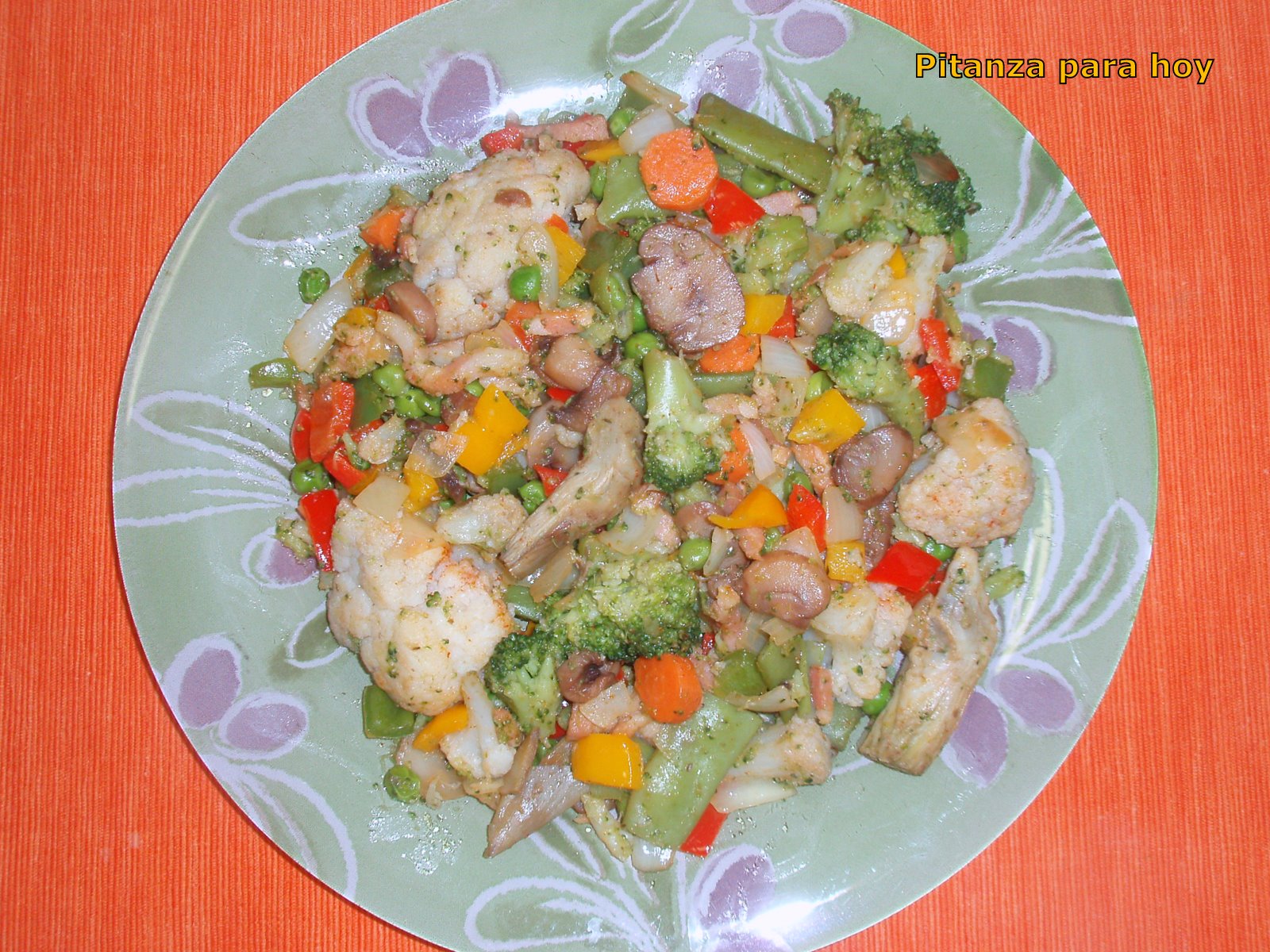 Esta receta la suelo hacer cada semana, está muy rica y casi no te das cuenta de que lo que estás comiendo es verdura, por eso os animo a probarla aunque no os gusten demasiado las verduras, ya que son muy sanas. Se trata de una mezcla de verduras variadas salteadas con bacon y con un poco de pimentón.