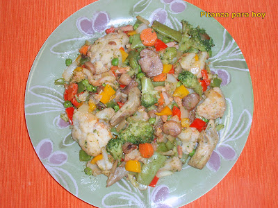 - Después añadir las verduras congeladas ya cocidas y saltearlo todo junto.