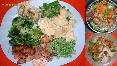 - Cocer las verduras congeladas el tiempo que ponga en los paquetes en el agua hirviendo con las hierbas aromáticas. Yo utilizo la olla rápida y las cuezo al vapor con un cestillo que trae, durante 5 minutos desde que hay que empezar a contar el tiempo.