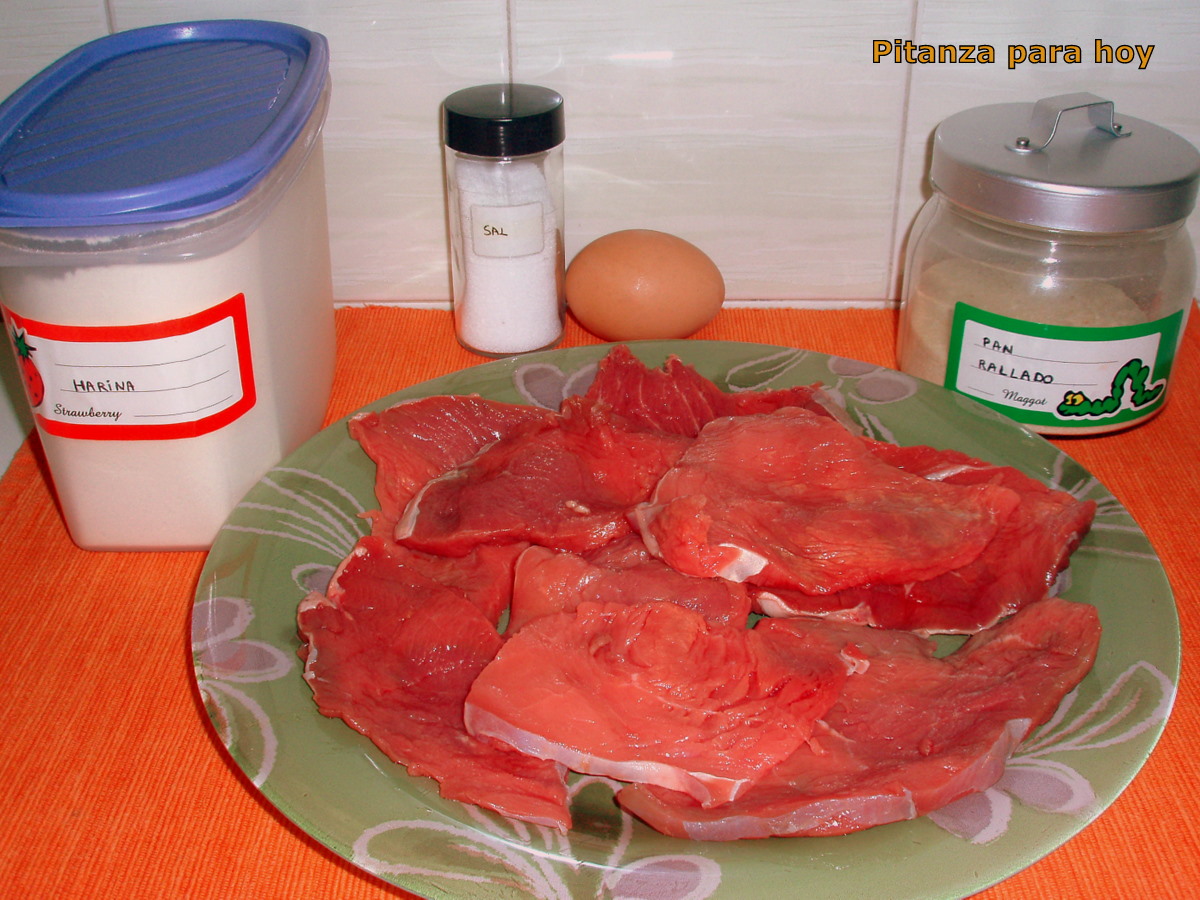 | Ingredientes para las milanesas de ternera |
