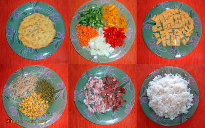 Esta receta, tuneada por mi, está basada en varias recetas de arroz frito de un libro de cocina que tengo que es todo de recetas de arroz. Se titula "Arroz. Más de 100 irresistibles recetas", de la editorial Parragón. Lo que he hecho ha sido coger los ingredientes de cada receta que más me llamaban la atención y seguir la forma de preparación común, para preparar esta receta de Arroz frito al estilo chino, a mi manera y con ingredientes muy fáciles de encontrar en cualquier supermercado.