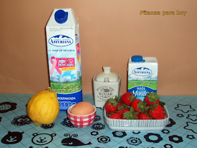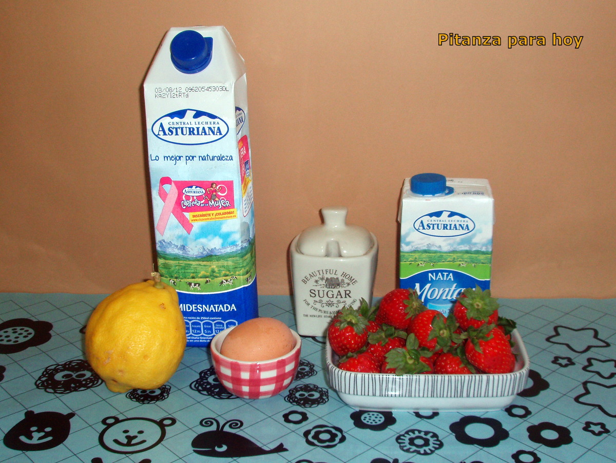 1. Lavamos las fresas, les quitamos el tallo y las picamos. Las trituramos con la batidora junto con el zumo del limón y la leche. Colamos con una malla fina para deshacernos de las pepitas de las fresas.