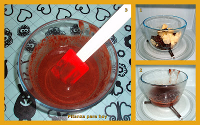 - Antes de lanzaros a cocer todos los moldes, por favor seguid mi consejo de comprobar primero con uno de ellos, ya que así podréis controlar el tiempo y la temperatura exactamente que necesita vuestro microondas. Recordad que cada microondas, al igual que cada horno, es un mundo. A mi me salieron bien con un minuto a 800 W y no se me desparramaron por fuera. Mi microondas no calienta muy potente, por ejemplo, para calentar bien una taza de leche para un colacao se necesitan 2 minutos y medio aproximadamente.