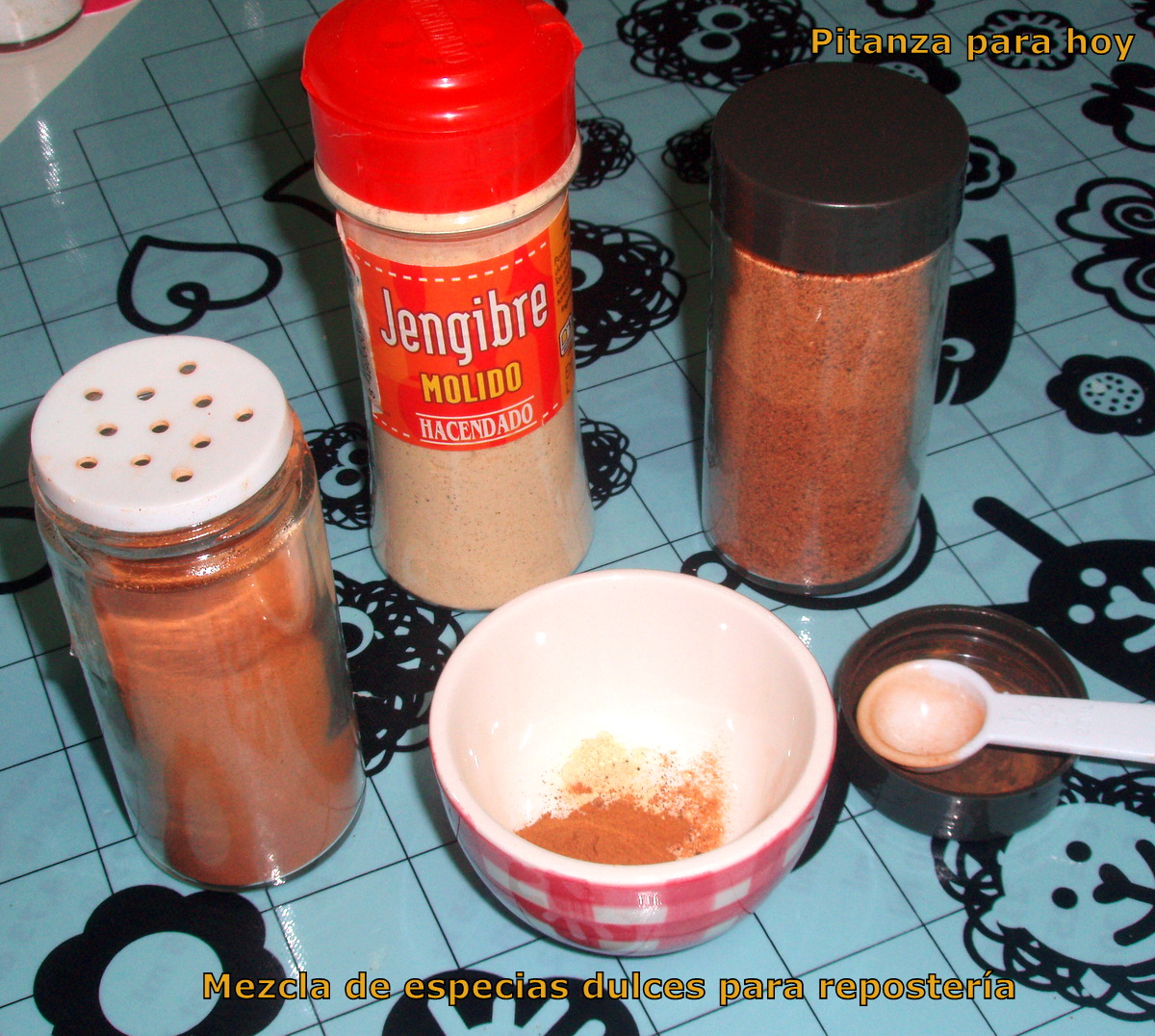 Esta combinación de especias dulces resulta muy apropiada en repostería para preparar postres especiados. Podéis tenerla preparada en un botecito para especias y así la tendréis siempre a mano para realizar este tipo de dulces navideños. Deberéis mezclar estas especias en la proporción que os cito a continuación: